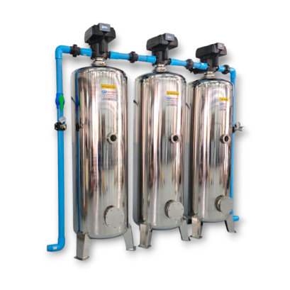 ถังกรองสแตนเลส 24" 3ขั้นตอนสำหรับกรองน้ำที่มีตะกรันหินปูน กรองตะกอนขุ่น ไว้ใช้ในโรงแรม รีสอร์ท อุตสากรรมที่ต้องการน้ำสะอาดไว้อุปโภค บริโภค