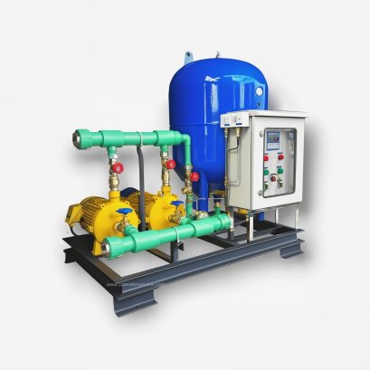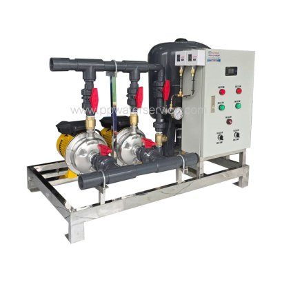 Transfer pump delivers water from the water tank below to the water tank above the roof of the building, office, home office, apartment.